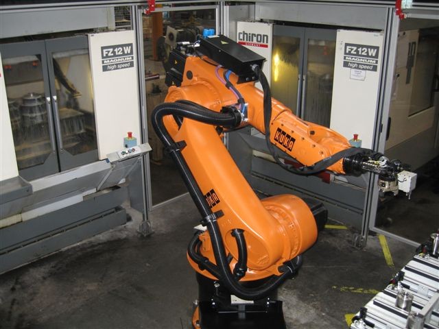 机床自动上下料机器人系统集成中的应用:在机械零部件自动化生产线上经常要完成毛坯和半成品中途装箱转运,各种加工设备的上料及下料,以及装配和分捡等其它工序过程中的上料及下料。