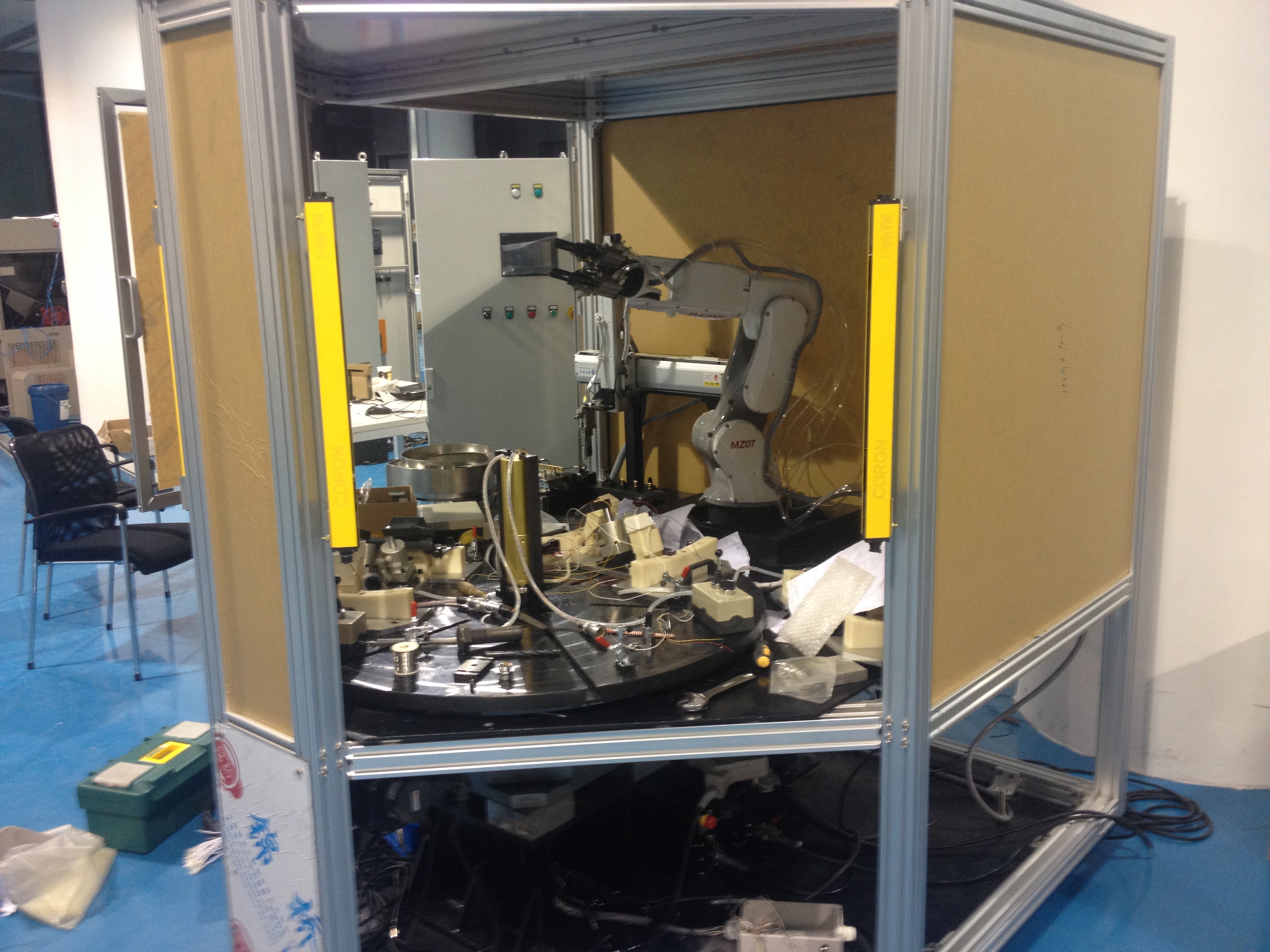 这就需要机器人配置供料和下料系统,形成一个完整的上下料系统,来保证机器人上下料自动化的作业,托盘料仓是一个很好的解决方案。